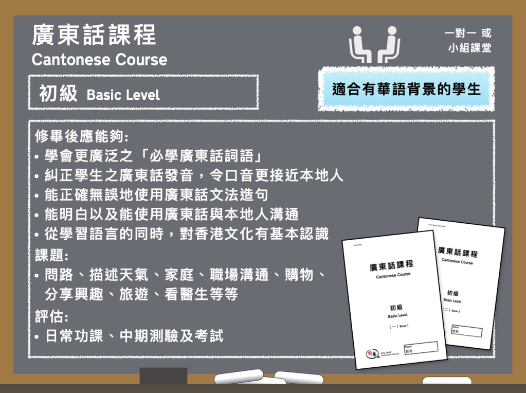 課 程 期 間 , 我 們 會 提 供 自 家 製 廣 東 話 學 習 材 料 及 筆 記 。